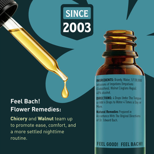Infusion of Feel Bach! flower essences: Impatiens (Impatiens Gladulifera), Walnut (Juglans Regia)