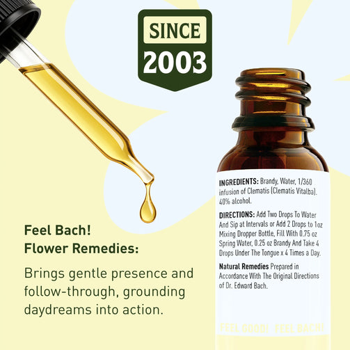 Following treatment with Feel Bach! Flower Remedies, the Clematis person is able to connect the inner and outer worlds and once again becomes interested in the physical world and the people surrounding him.