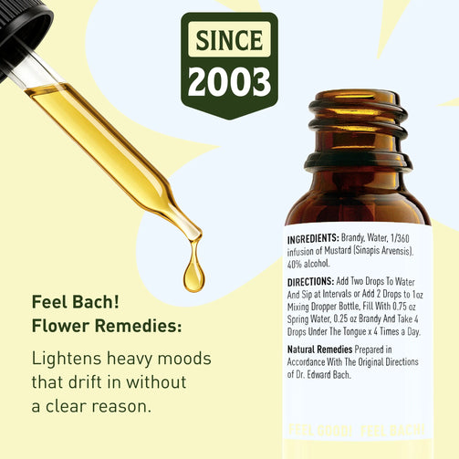 When speaking of this Feel Bach! Flower Essence, Dr. Bach said: "This remedy dispels gloom, and brings joy into life." Thus a person using the Mustard Feel Bach! Flower Remedy will have the feeling of waking from a dark, heavy dream - in which the darkness rolls away and allows them once again to experience the light.