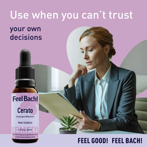 After using the Feel Bach! Flower remedy Cerato, the individual's inner voice will once again be heard and will grow stronger. The person will gain an attitude of quiet certainty, so that no outside argument will deter him from a decision which he knows to be the right one.